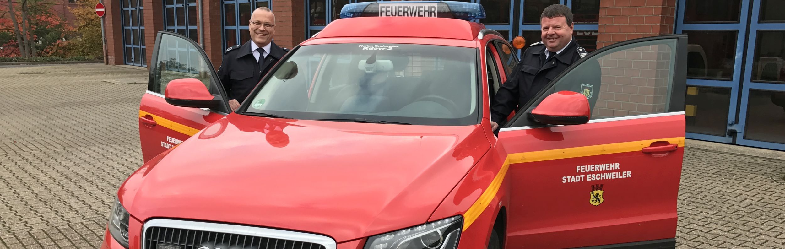 Die Wehrführung der Feuerwehr der Stadt Eschweiler setzt sich zusammen aus dem Leiter der Feuerwehr Oberbrandrat Axel Johnen sowie seinem Stellvertreter Stadtbrandinspektor Stefan Preuß.