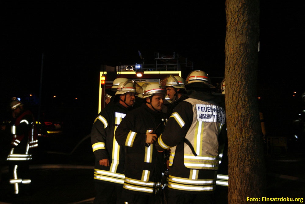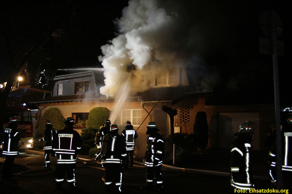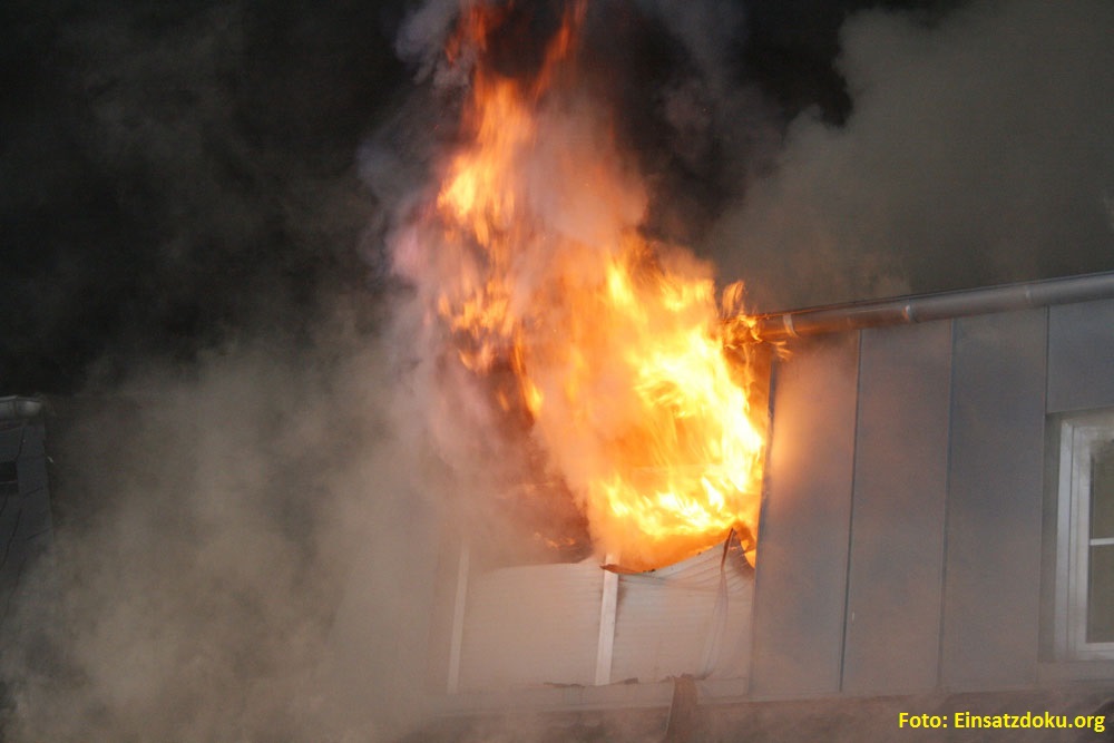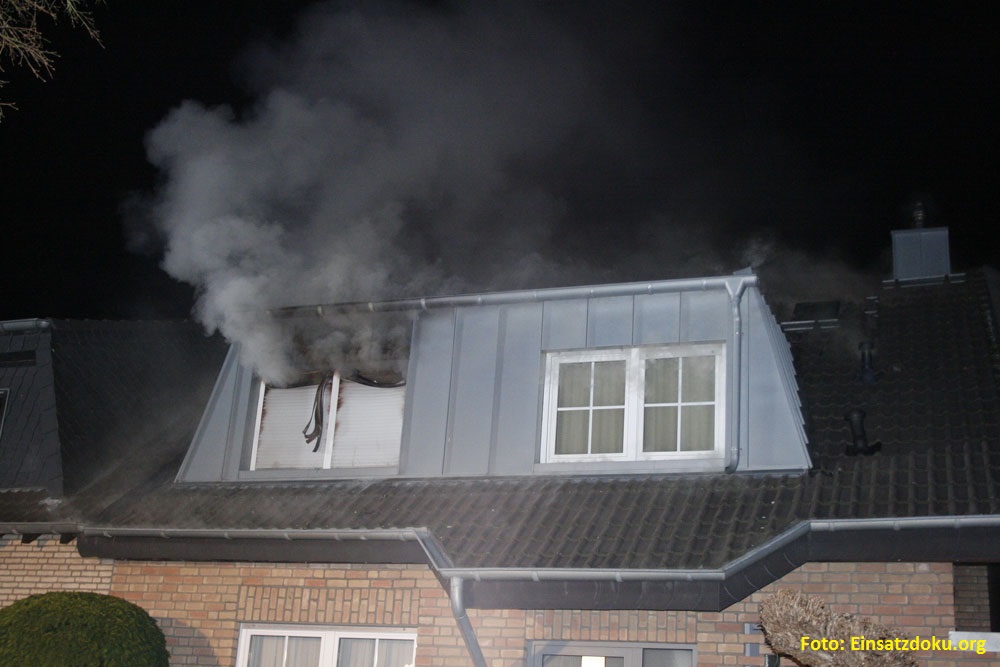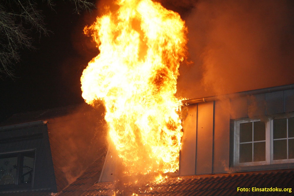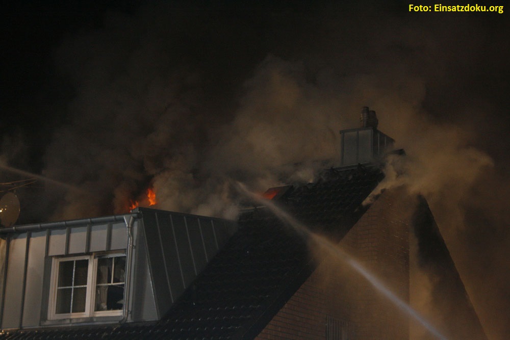 Vor Ort stellten die Einsatzkräfte eine Rauchentwicklung aus dem Dachgeschoss einer Doppelhaushälfte fest, die sich extrem verstärkte. Nachdem sich die Einsatzkräfte gewaltsam Zugang zum Gebäude verschafft hatten und der erste Trupp mit der Personensuche im Gebäude begonnen hatte, kam es plötzlich zu einer Durchzündung, so dass in Sekundenschnelle das Dachgeschoss zu großen Teilen in Flammen stand.