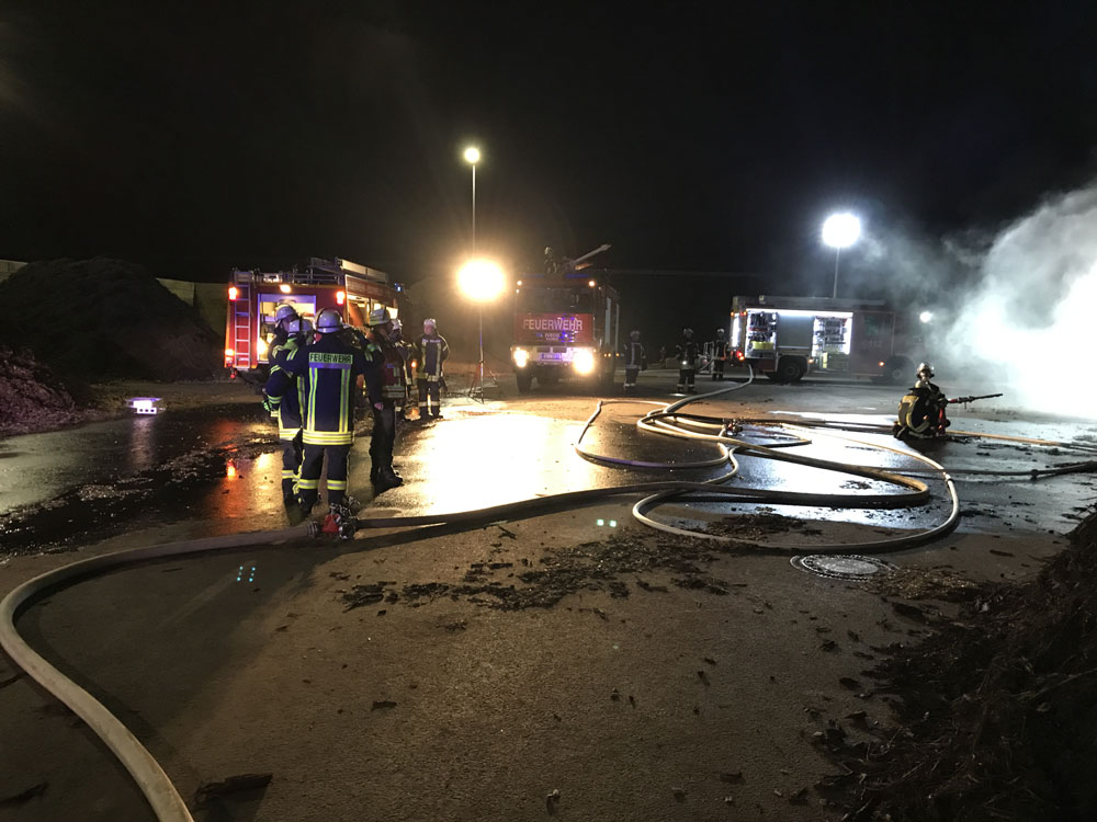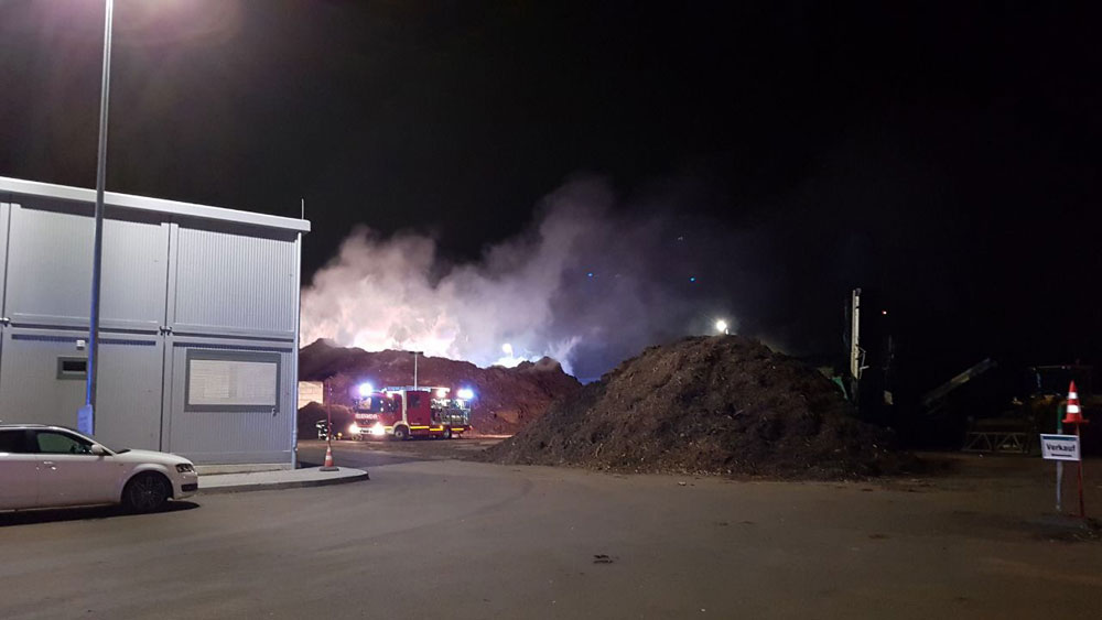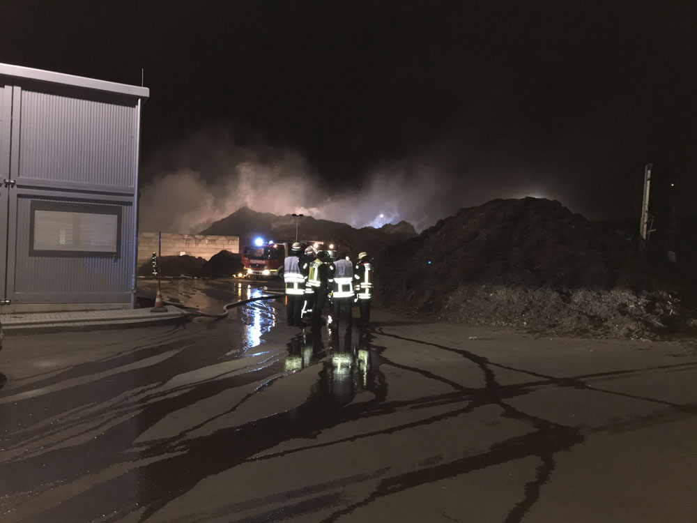 Im Bereich des Kompostplatzes der Deponie brannten große Mengen an „Holzhäcksel“ mit starker Rauchentwicklung, die auch im Bereich der Rue de Wattrelos zu einer Sichtbehinderung führte. Das Feuer wurde mit insgesamt 6 C-Rohren und einem Wasserwerfer – unter Verwendung von Atemschutzfiltern – bekämpft. Mit mehreren Radladern wurde das Brandgut mehrfach umgesetzt und mit viel Wasser nachgelöscht. Gegen 3 Uhr ließ die Brandintensität deutlich nach und die Anzahl der Rohre sowie der Einsatzkräfte konnte reduziert werden. Gegen 6 Uhr waren alle ehren- und hauptamtlichen Kräfte wieder an ihren Standorten. Als Brandursache wird Selbstentzündung vermutet. Durch den Deponiebetreiber wurde anschließend mit eigenen Kräften eine Brandsicherheitswache gestellt, da mittels einer Wärmebildkamera immer noch Temperaturen von ca. 50 Grad in den „Häckselbergen“ festgestellt wurden. Eine Gefährdung für die Bevölkerung war nicht gegeben.
