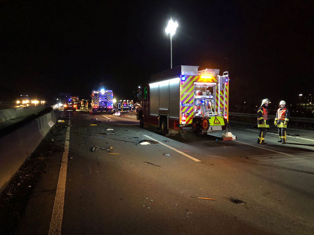 Die Feuerwehr sicherte die Unfallstelle ab, unterstützte den Rettungsdienst bei der Erstversorgung der Verletzten, leuchtete die Unfallstelle großflächig aus und nahm ausgelaufene Betriebsmittel auf. Nach Bergung der Unfall-PKW konnte die Einsatzstelle gegen 22:00 Uhr an die Polizei übergeben werden.
