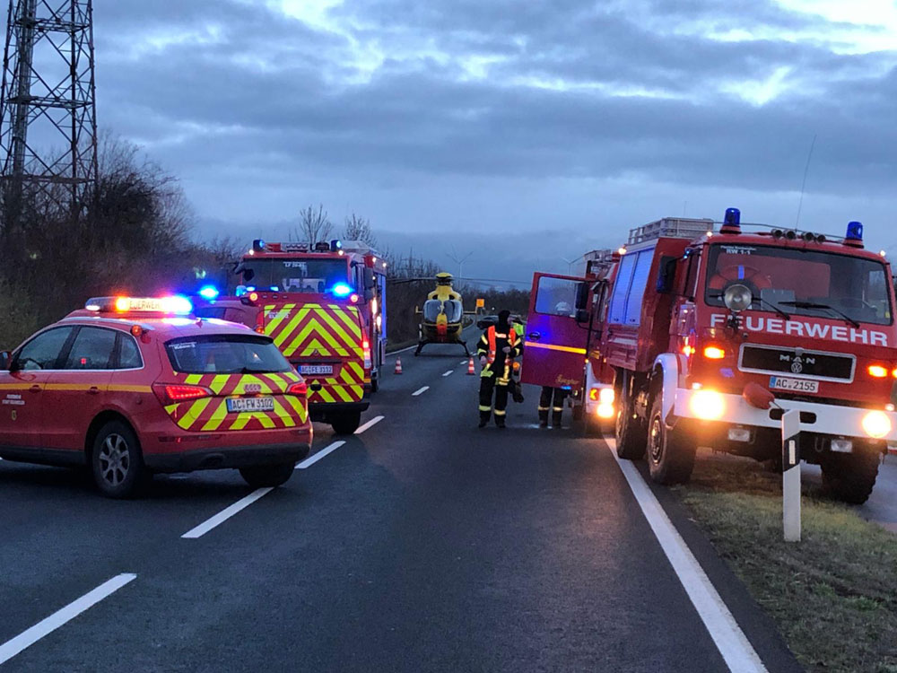 Gegen 07:25 Uhr wurde der Feuerwehr ein Verkehrsunfall zwischen einem PKW und einem LKW gemeldet. Aufgrund der Meldung wurden unverzüglich die Einsatzkräfte der hauptamtlichen Feuer- und Rettungswache, der Löschzüge 32 und 41, zwei Rettungswagen sowie ein Notarzt alarmiert und in Bewegung gesetzt.
