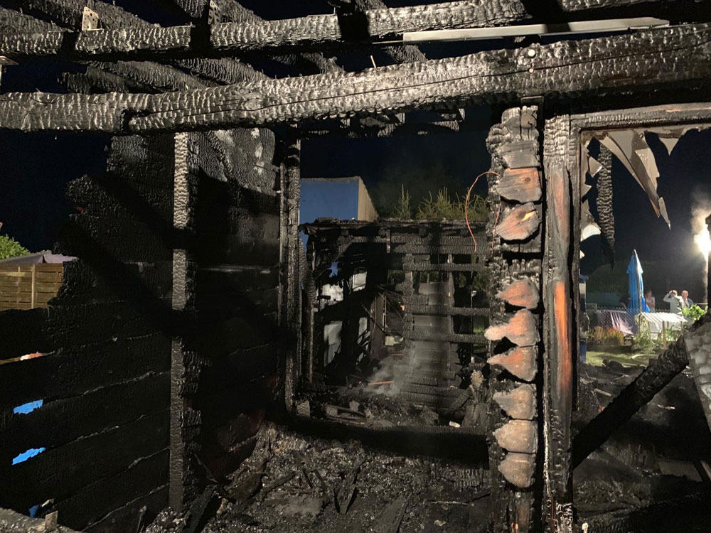 Vor Ort konnten die Einsatzkräfte den Brand von drei Schuppen auf einem Grundstück in unmittelbarer Bebauung zu weiteren Gebäuden feststellen. Durch einen massiven Löschangriff konnte das Feuer bekämpft und auf die drei zunächst betroffenen Schuppen beschränkt werden.