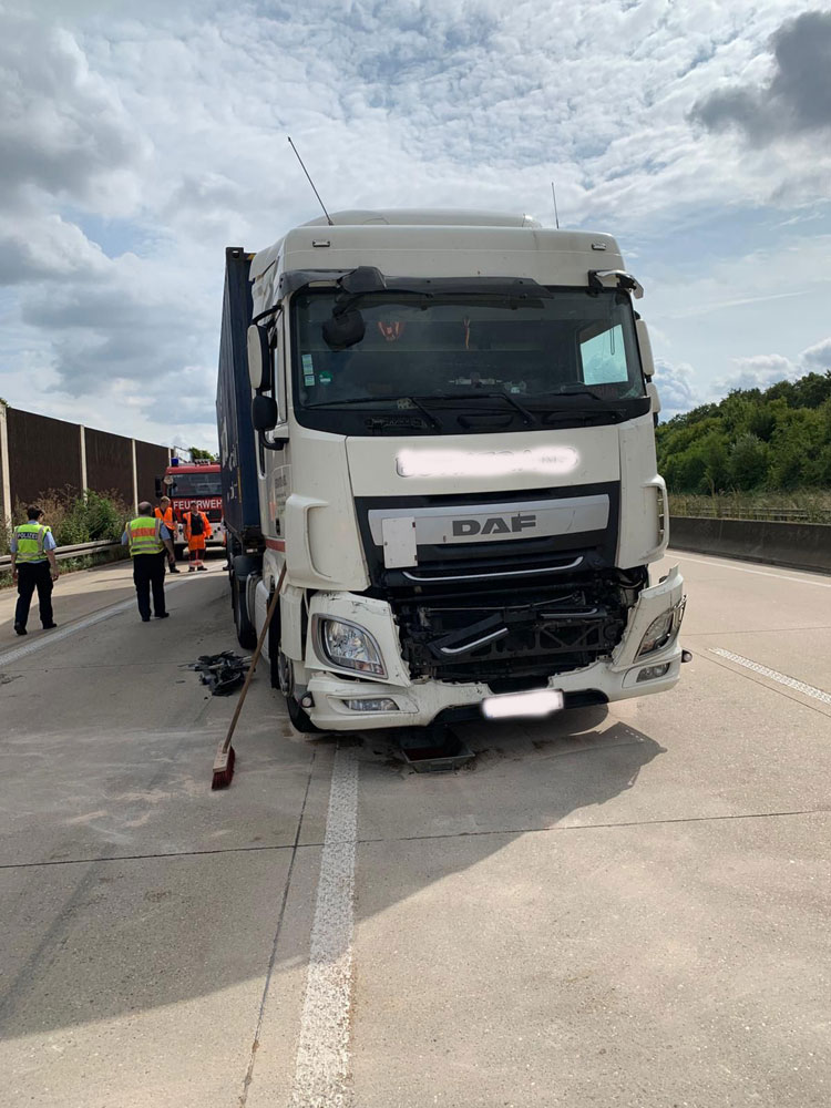 Noch während der laufenden Erstmaßnahmen ereigneten sich im Rückstau, der aufgrund des Unfalls entstanden war, zwei weitere Auffahrunfälle. In einem Fall mussten weitere Einsatzkräfte der Feuerwehr tätig werden. Ein LKW war auf einen vor ihm auf der Fahrbahn haltenden weiteren LKW aufgefahren. Hierbei wurde der Fahrer des auffahrenden LKW leicht verletzt und musste ebenfalls rettungsdienstlich versorgt werden. Die Feuerwehr musste auch hier ausgelaufende Betriebsmittel auffangen und Trümmer von der Fahrbahn beseitigen.