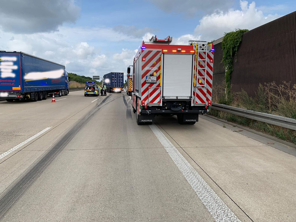 Um 09:33 Uhr wurde der Leitstelle ein Verkehrsunfall mit eingeklemmter Person auf der BAB 4 zwischen Eschweiler-Ost und Eschweiler-West gemeldet. Neben den Einheiten der Feuerwache und des Löschzuges 41 wurden auch ein Notarzt und Einsatzkräfte der Polizei alarmiert.