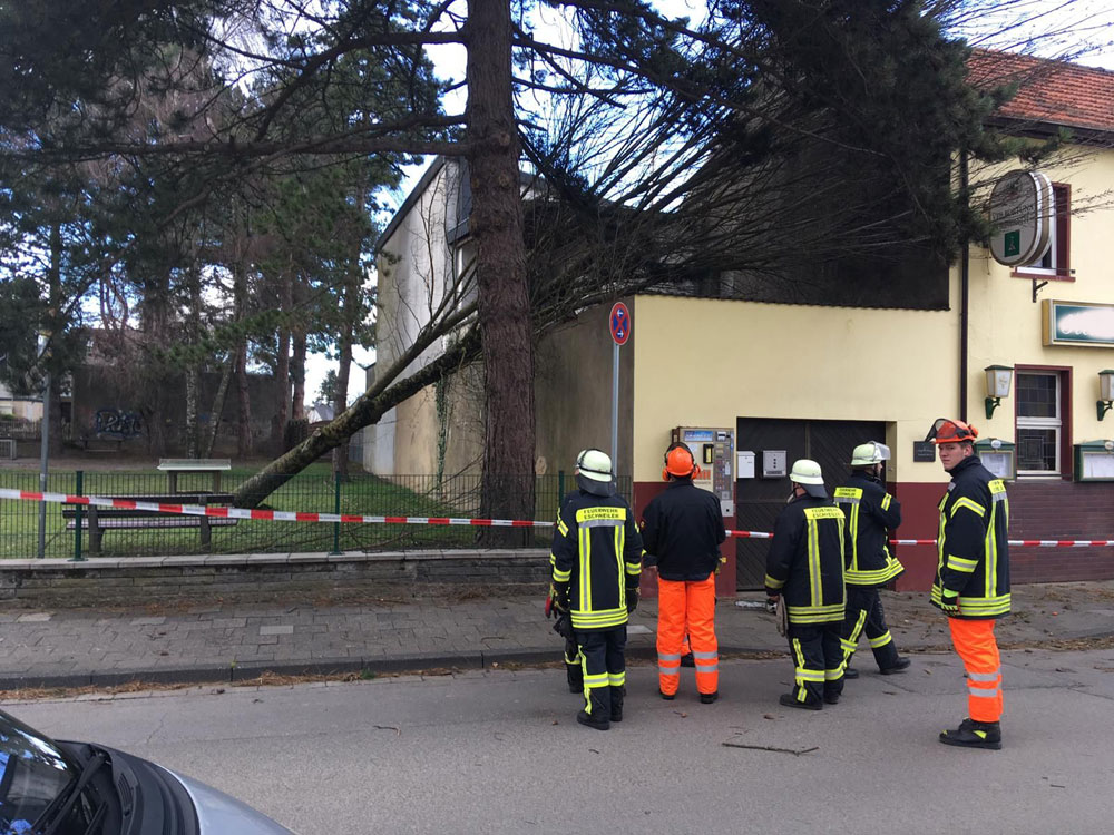 Neben zahlreichen Bäumen, die auf Straßen und Gehwege stürzten, waren auch mehrere Häuser betroffen, auf die Bäume gefallen waren. Darüber hinaus mussten lose Gebäudeteile wie Dachziegel, Dachbahnen oder Werbeschilder gesichert oder demontiert werden.