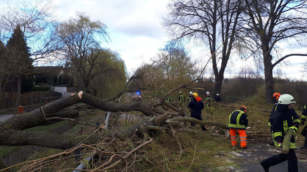 Um 12:30 Uhr erfolgte die erste Einsatzmeldung über einen umgestürzten Baum an der Mariadorfer Straße. Noch während die Mannschaft der hauptamtlichen Feuer- und Rettungswache diese Gefahrenstelle beseitigte erfolgten weitere Meldungen über Sturmschäden, so dass erste freiwillige Löschzüge alarmiert wurden. Bis ca. 14:00 Uhr liefen auf der Einsatzzentrale der Feuerwache ungefähr im 5-Minuten-Takt neue Einsatzmeldungen ein, die durch die hauptamtliche Wache und sechs der acht freiwilligen Löschzüge abgearbeitet wurden.