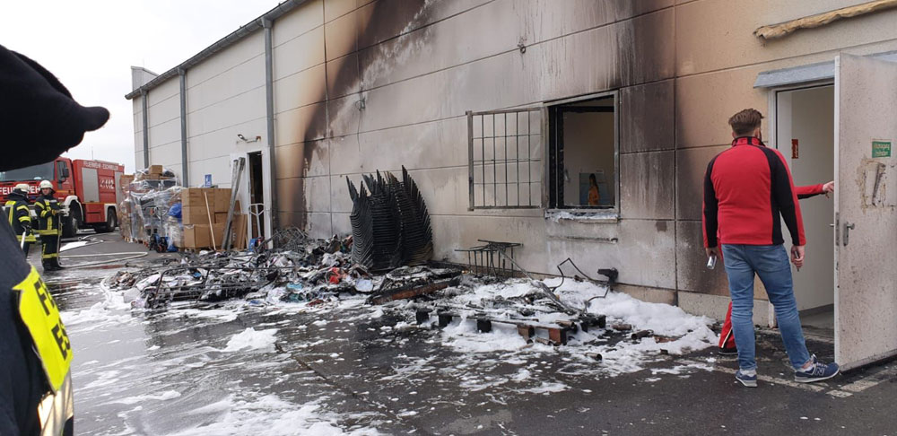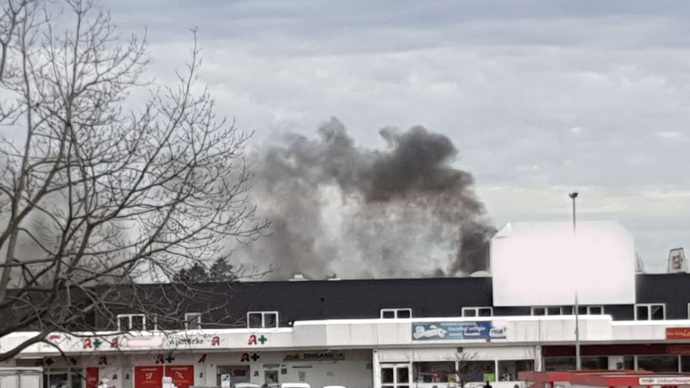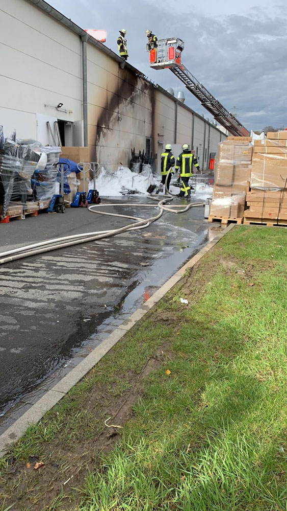 Auf Anfahrt der ersten Einsatzkräfte war bereits von weitem eine starke Rauchentwicklung sichtbar. Vor Ort konnte dann festgestellt werden, dass nicht nur einige Teile des Dachrandes sondern auch an der Rückseite des Gebäudes gelagerte Lagerbehälter, Kartonagen und Verpackungsmaterialien brannten und die Flammen drohten auf die gesamte Dachfläche überzugreifen. Im Fachmarktzentrum wurde Feueralarm ausgelöst und alle Nutzer mussten das Gebäude verlassen.
