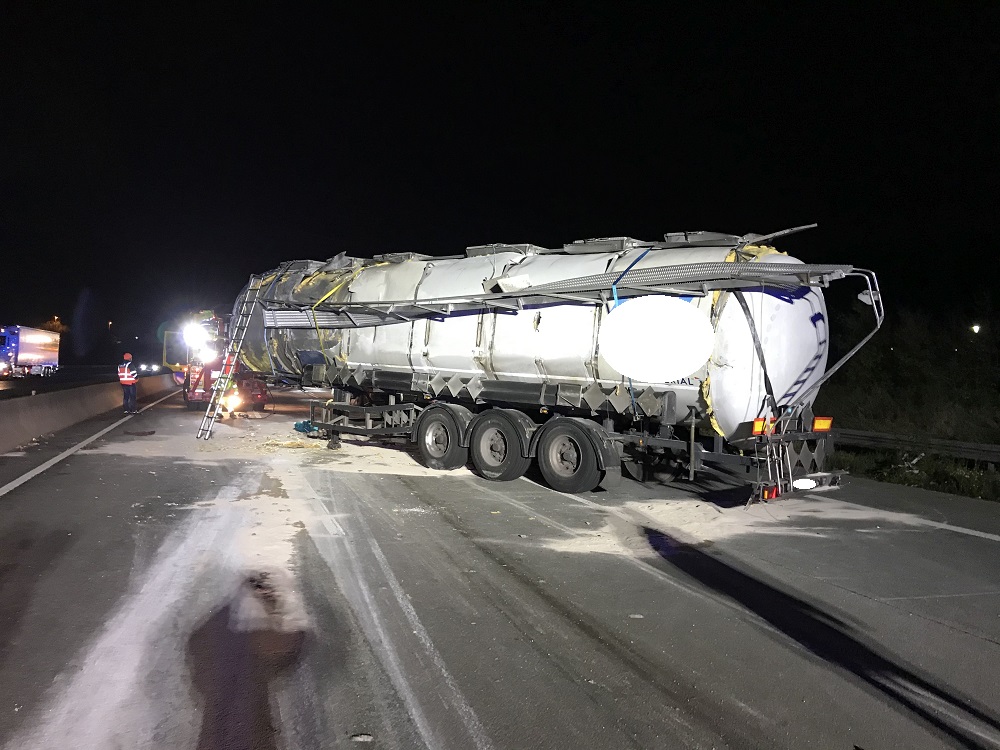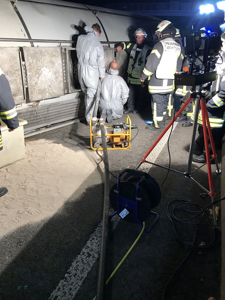 Nach Beendigung des Einsatzes der Feuerwehr wurde dann noch die Fahrbahn und der angrenzende Grünstreifen durch ein Spezialunternehmen gereinigt bzw. ausgetauscht. Die Vollsperrung der Autobahn dauerte bis ca. 03:00 Uhr in der Nacht.