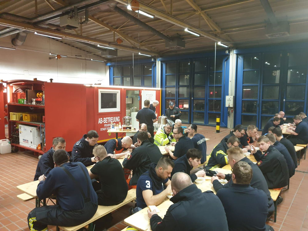 Während der gesamten Einsatzzeit wurde durch die Kräfte der Logistikgruppe eine Verpflegung mit Essen und Getränken auf der Feuerwehrwache sichergestellt.