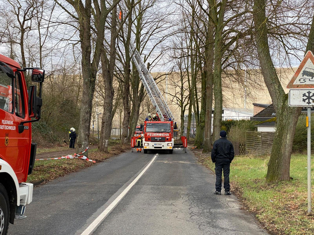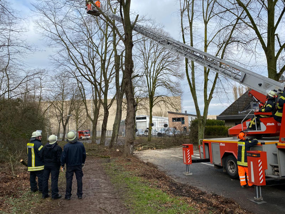 Einsatzbericht: Nachdem Sonntag und Montag aufgrund des Sturmtiefs "Sabine" weit über 100 Einsatzstellen durch die Feuerwehr Eschweiler bearbeitet wurden erfolgten in den Folgetagen immer wieder weitere Meldungen über Gefahrensituationen - im Wesentlichen begründet in umgestürzten oder umsturzgefährdeten Bäumen oder in herabfallenden Gebäudeteilen. Am heutigen Freitag wurde die Feuerwehr zur Cäcilienstraße alarmiert. Dort drohte ein großer Straßenbaum auf ein Grundstück zu stürzen.