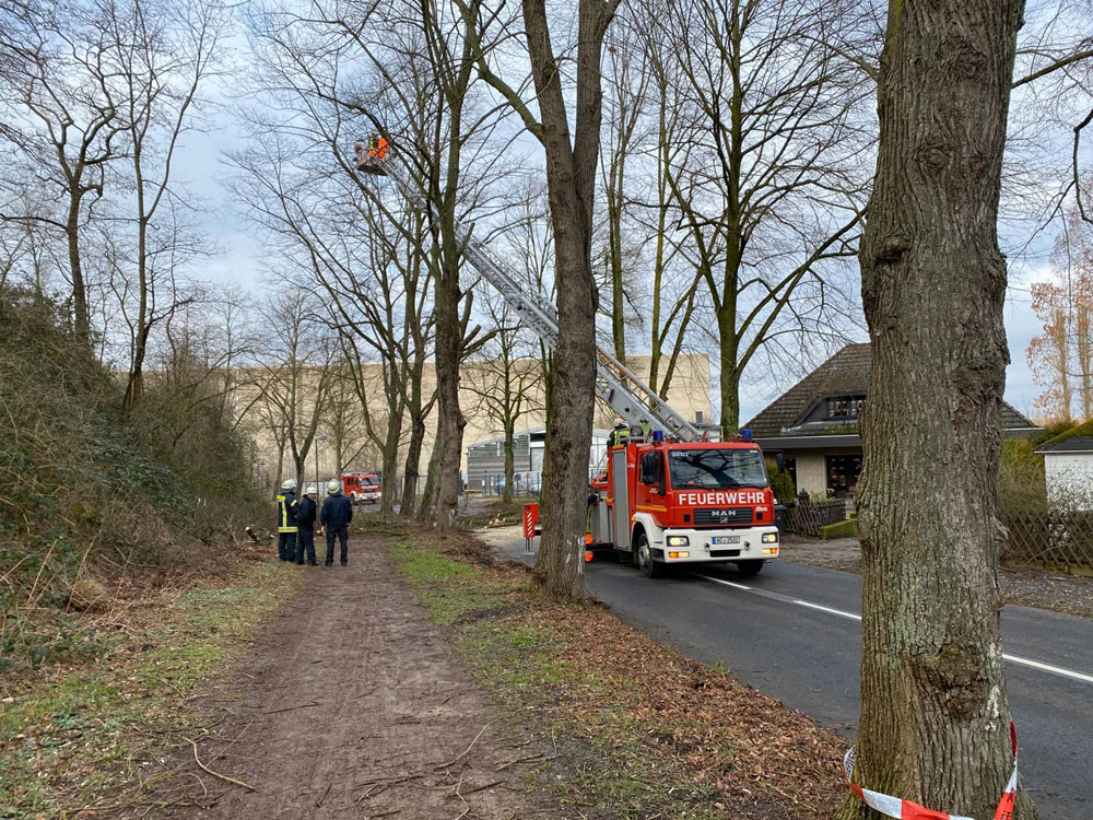 Die Einsatzkräfte der Löschzüge Weisweiler und Bohl sicherten die Situation durch Fällung des gefährdeten Baumes.