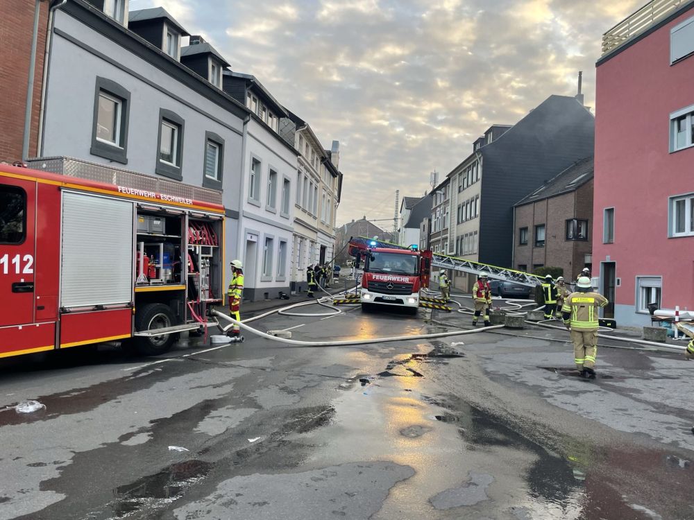 Wenige Minuten nach Eintreffen der ersten Einsatzkräfte an der Einsatzstelle wurde durch die Einsatzleitung Gesamtwehralarm für alle Einheiten der Feuerwehr Eschweiler ausgelöst. Hierdurch konnte sichergestellt werden, dass genügend Einsatzkräfte, insbesondere Atemschutzgeräteträger, an der Einsatzstelle waren. Gleichzeitig wurde der Gerätewagen Atemschutz der StädteRegion Aachen, der in Würselen stationiert ist, zur Einsatzstelle entsandt. Um bei einem weiteren Notfall im Stadtgebiet schnell Hilfe leisten zu können, wurde ein Löschzug der Feuerwehr Stolberg alarmiert und auf der Feuer- und Rettungswache Eschweiler in Bereitschaft gesetzt.