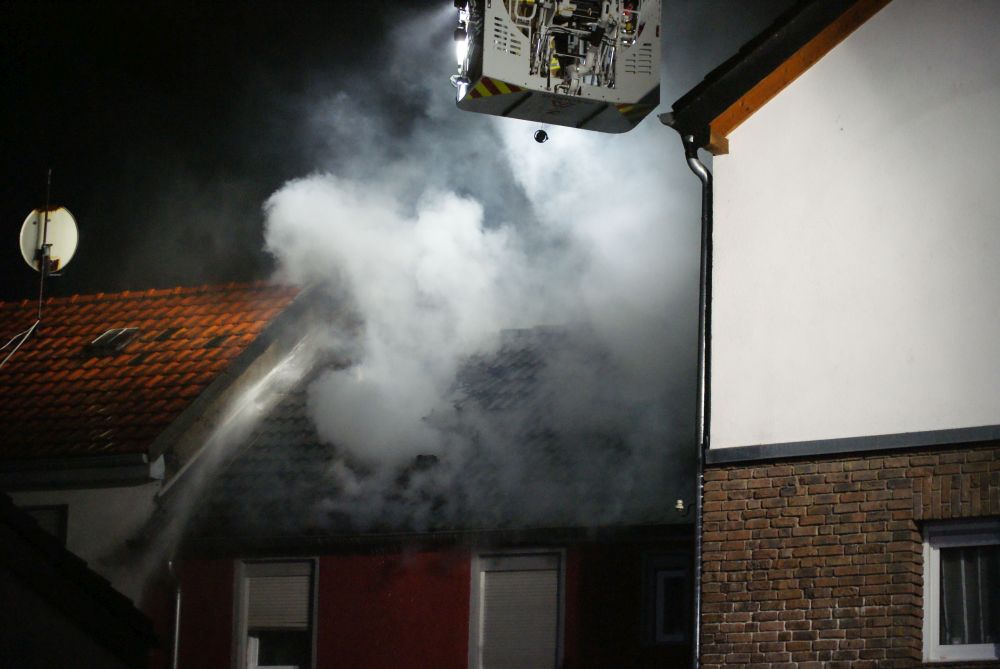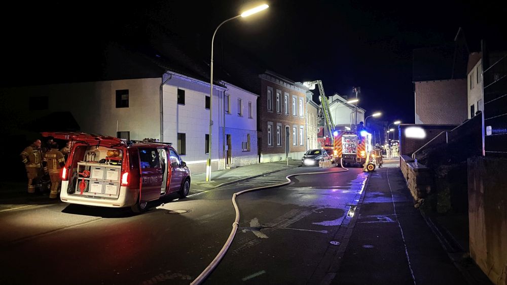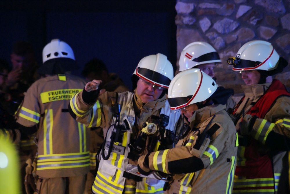Mehrere Trupps unter Atemschutz konnten zunächst eine Übergreifen der Flammen auf die Nachbarbebauung verhindern und im Anschluss das brennende Gebäude löschen. Hierzu wurden auch beide Drehleitern der Feuerwehr Eschweiler eingesetzt. Aufgrund der engen Bebauung sowie der alten Bausubstanz gestaltete sich dieses schwierig, aber letztendlich erfolgreich.