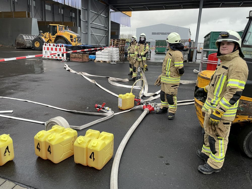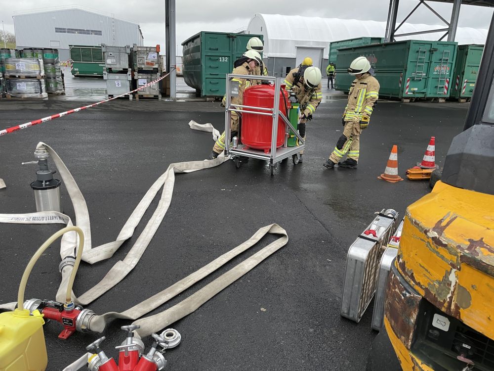 Aufgrund der vorgefundenen Lage wurde das Alarmstichwort durch den Einsatzleiter direkt erhöht und neben weiteren Einsatzkräften der Feuerwehr Eschweiler auch speziell auf Gefahrguteinsätze spezialisierte Einsatzkräfte der Städteregion Aachen aus Herzogenrath, Eschweiler und Würselen alarmiert. Ebenfalls wurden ein Notarzt und weitere Rettungsdienstkräfte zur Einsatzstelle geordert.