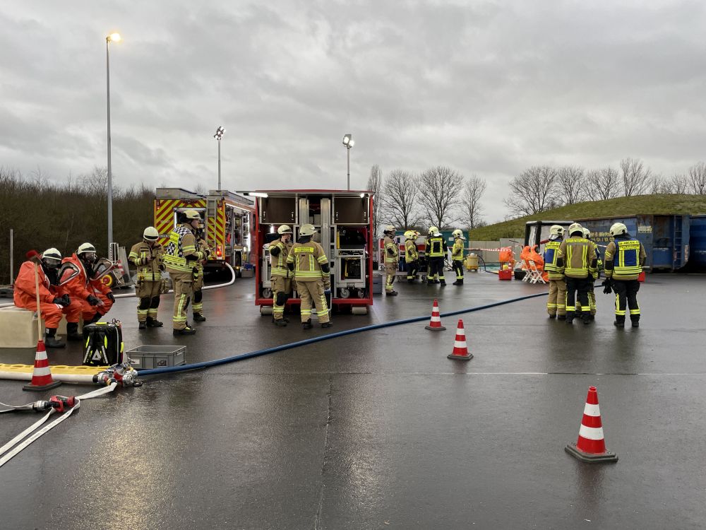Um kurz vor halb drei am Nachmittag vor Heiligabend liefen auf der Feuerwache die Alarmglocken und die Funkmeldeempfänger des freiwilligen Löschzuges 21 schlugen Alarm. Von der Deponie Warden, für die die Eschweiler Feuerwehr zuständig ist, kam die Meldung über unkontrolliert freiwerdende Gefahrstoffe.