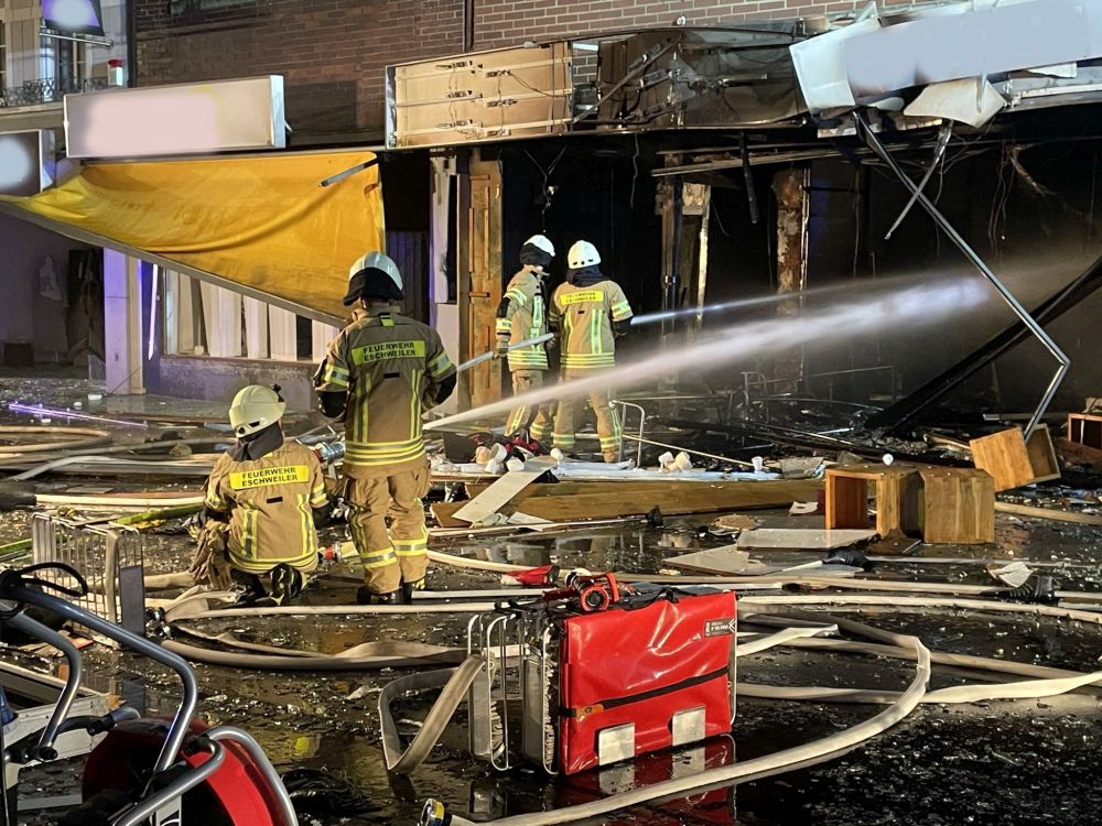 Jedoch war dies nicht nur ein großer Einsatz für die Feuerwehrkräfte aus Eschweiler. Zahlreiche Einsatzkräfte der Polizei, unter anderem eine Einsatzhundertschaft aus Wuppertal, sperrten die Innenstadt großflächig ab und sorgten dafür, dass die Einsatzstelle und die zahlreichen zerstörten Gebäudefronten gesichert wurden. Auch viele Kräfte der Stadtverwaltung Eschweiler, des Bauhofs und weiterer Fachdienste waren vor Ort. Unsere Bürgermeisterin Nadine Leonhardt machte sich vor Ort ein Bild der Lage und unterstützte die Einsatzkräfte.