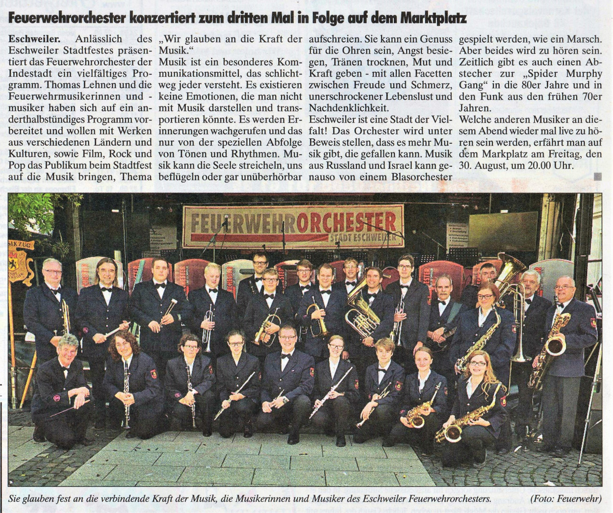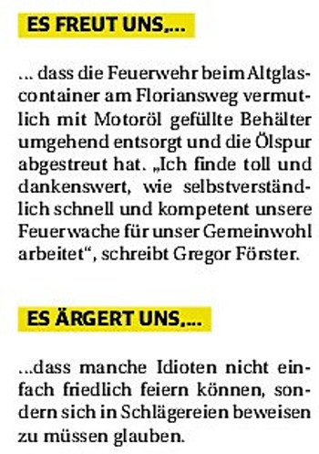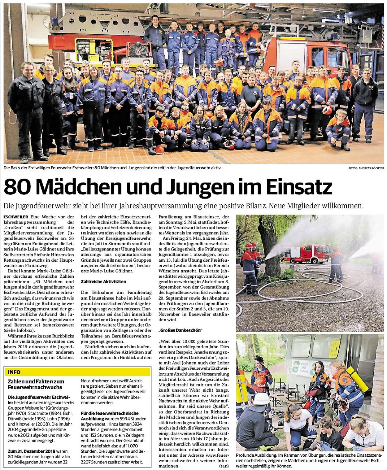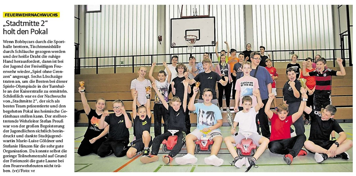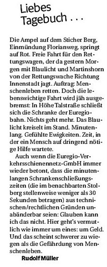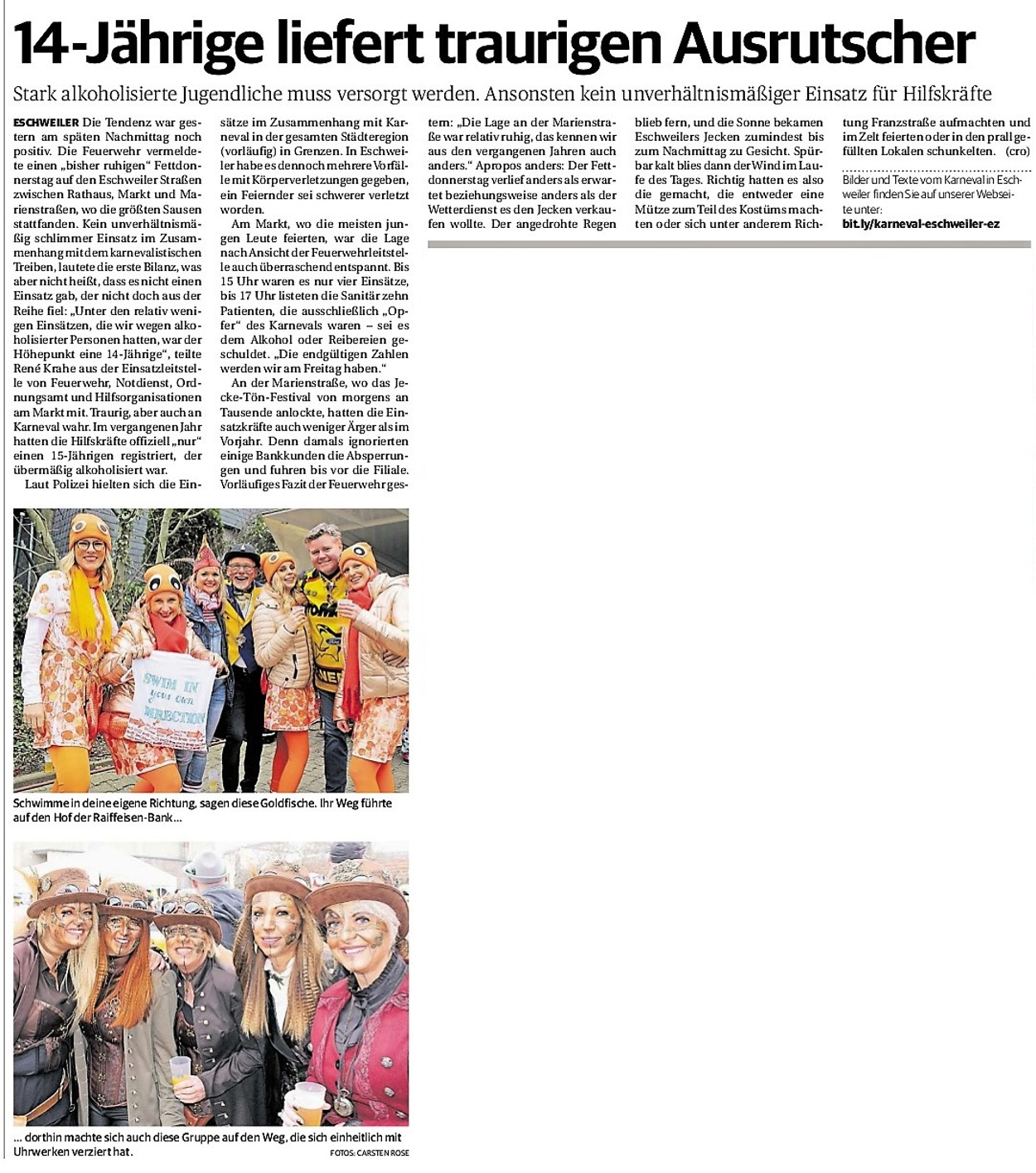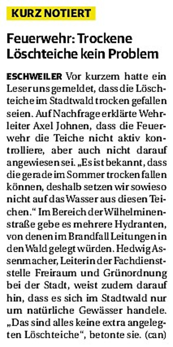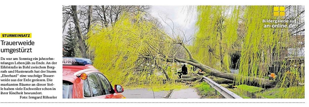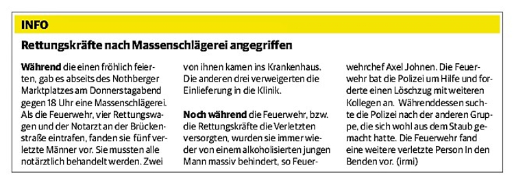 2019 30.12.2019 In Röhe brennt eine Sauna im Anbau aus EN / EZ 28.12.2019 A4 - Fahrzeuge krachen ineinander EN / EZ 16.12.2019 Kurz Notiert - Zwei wetterbedingte Einsätze EN / EZ 11.12.2019 Schwerer Unfall auf Rue de Wattrelos EN / EZ 22.11.2019 Kurz Notiert - Zwei Unfälle fordern vier Verletzte EN / EZ 20.11.2019 A4 dicht: LKW-Fahrer mit 2,3 Promille EN / EZ 10.11.2019 Delegiertentag des Kreisfeuerwehrverbands SuperSonntag 29.10.2019 Kurz Notiert - Angebranntes Essen EN / EZ 23.10.2019 18 Feuerwehrleute bestanden Grundausbildung EN / EZ 14.10.2019 Jugendfeuerwehr - Spiel ohne Grenzen EN / EZ 09.10.2019 Kreisjugendfeuerwehrtag in Alsdorf Filmpost 09.10.2019 Vier Verletzte auf Rue de Wattrelos EN / EZ 07.10.2019 Kurz Notiert - Küchenbrand EN / EZ 03.10.2019 Kurz Notiert - und - Unfall Auf Der A 4 EN / EZ 02.10.2019 Interkommunaler Brandmeisterlehrgang Filmpost 30.09.2019 Kurz Notiert - Baum drohte zu stürzen EN / EZ 30.09.2019 Jugendfeuerwehr trainiert in Lagerhalle EN / EZ 26.09.2019 Kurz Notiert - Trockene Löschteiche EN / EZ 23.09.2019 18 Jährige verliert Kontrolle über Auto EN / EZ 23.09.2019 Erneut Unfall im Blausteinsee EN / EZ 23.09.2019 Spektrakuläre Unfallszenarien: Schockraumtraining EN / EZ 20.09.2019 Der Einsatz, die Obduktion, die Fragen EN / EZ 19.09.2019 Mercedes ausgebrannt, zwei Verletzte bei Unfall EN / EZ 12.09.2019 Kurz Notiert - Gasalarm und Pkw-Brand EN / EZ 30.08.2019 Polizei ermittelt wegen Brandstiftung EN / EZ 28.08.2019 Mit Blaulicht aufs Fest EN / EZ 23.08.2019 Dachstuhl brennt in der Nacht komplett durch EN / EZ 21.08.2019 Das Feuerwehrorchester auf dem Marktplatz Filmpost 15.08.2019 Weit mehr als "nur" Brandschutz EN / EZ 10.08.2019 Training - Rettung von Großtieren EN / EZ 09.08.2019 Kurz Notiert - Feuerwehr holt Kind aus Aufzug EN / EZ 08.08.2019 BAB-A4 - PKW von LKW mitgeschleift EN / EZ 01.08.2019 Freiwillige Feuerwehr bewässert Jungbäume EN / EZ 31.07.2019 Gartenhaus und Schuppen in Flammen EN / EZ 30.07.2019 Rathausbrand EN / EZ 27.07.2019 Es freut uns - Feuerwehr unterstützt Grünflächenamt EN / EZ 22.07.2019 Unfall mit Party-Anhänger und Starkregeneinsätze EN / EZ 16.07.2019 Jugendfeuerwehren legen sich ins Zeug EN / EZ 09.07.2019 Drei Gartenhäuser brennen nieder EN / EZ 06.07.2019 Von Ballenpresse ausgelöster Feldbrand EN / EZ 05.07.2019 Ein nagelneues Löschfahrzeug "für umsonst" EN / EZ 03.07.2019 Rue de Wattrelos - LKW-Anhänger kippt um EN / EZ 28.06.2019 Kurz Notiert - "Spiel ohne Grenzen" ist abgesagt EN / EZ 26.06.2019 Kat-Schutz - Zehn neue Fahrzeuge übergeben EN / EZ 24.06.2019 "Spiel ohne Grenzen" bei der Jugendfeuerwehr EN / EZ 19.06.2019 Der Leistungsnachweis in Konzen / Imgenbroich EN / EZ 01.06.2019 Info - Rettungskräfte angegriffen EN / EZ 28.05.2019 Kurz Notiert - Brand zerstört Schuppen EN / EZ 24.05.2019 Jugendfeuerwehr - Ein Tag ohne Einsatzübung EN / EZ 16.05.2019 Gartenhaus brennt EN / EZ 15.05.2019 Ein Schwerverletzter, Haus unbewohnbar EN / EZ 04.05.2019 Internationaler Tag der Feuerwehrleute - 2 EN / EZ 04.05.2019 Internationaler Tag der Feuerwehrleute - 1 EN / EZ 29.04.2019 Wenn das E-Auto in Flammen steht EN / EZ 27.04.2019 Neuer Rettungswagen für Feuerwehr EN / EZ 20.04.2019 Brennender Durchlauferhitzer EN / EZ 13.04.2019 Kurz Notiert - Strohballen brennen EN / EZ 11.04.2019 Der 14. interkommunale Brandmeisterlehrgang EN / EZ 04.04.2019 Kurz Notiert - Ölspur EN / EZ 01.04.2019 Die Jahreshauptversammlung der Feuerwehr EN / EZ 28.03.2019 Wohnung in Mehrfamilienhaus brennt aus EN / EZ 25.03.2019 80 Mädchen und Jungen im Einsatz EN / EZ 13.03.2019 Großeinsatz der Wehr EN / EZ 12.03.2019 Einsätze im Takt von 5 Minuten EN / EZ 11.03.2019 Trauerweide umgestürzt EN / EZ 08.03.2019 Kurz Notiert - Drei Einsätze binnen kurzer Zeit EN / EZ 06.03.2019 Schlussbilanz zu Rosenmontag EN / EZ 05.03.2019 Rosenmontag - Kurz notiert EN / EZ 04.03.2019 Prinzenempfang am Florianweg EN / EZ 02.03.2019 Es freut uns - Es ärgert uns EN / EZ 01.03.2019 Donnerstag - 14-Jährige liefert traurigen Ausrutscher EN / EZ 27.02.2019 Städteregion - Mehr Jugendfeuerwehrmitglieder EN / EZ 18.02.2019 Transporter stürzt auf der A 4 um EN / EZ 15.02.2019 Eine angesägte Gasleitung EN / EZ 06.02.2019 Kehrmaschine zieht Ölspur durch die Stadt EN / EZ 02.02.2019 Zufahrt zur A 544 nach Unfall gesperrt EN / EZ 30.01.2019 Auch Helfer brauchen manchmal Hilfe EN / EZ 29.01.2019 Liebes Tagebuch - In Sachen Bahnschranke EN / EZ 28.01.2019 Einige Einsätze für die Wehr EN / EZ 17.01.2019 Es Freut Uns - Feuerwehr reagierte sofort EN / EZ 02.01.2019 Von ruhigem Jahreswechsel keine Rede EN / EZ